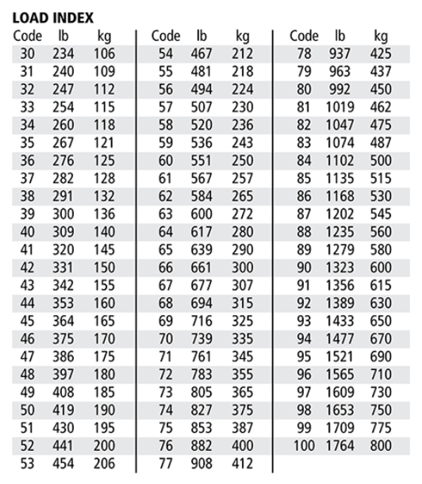 - Load Index 42 (330lb/150Kg)
